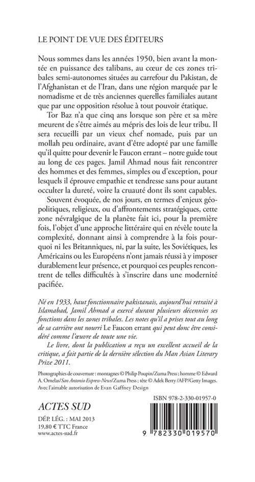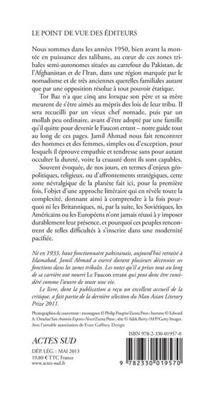 Tor Baz n'a que cinq ans lorsque son père et sa mère meurent de s'être aimés au mépris des lois de leur tribu. Il sera recueilli par un vieux chef nomade, puis par un mollah peu ordinaire, avant d'être adopté par une famille qu'il quitte pour devenir le Faucon errant - notre guide tout au long de ces pages. Jamil Ahmad nous fait rencontrer des hommes et des femmes, simples ou d'exception, pour lesquels il éprouve empathie et tendresse sans pour autant occulter la dureté, voire la cruauté dont ils sont capables.