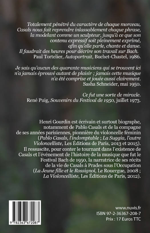 Un roman mettant en scène la narratrice de La jeune fille et le rossignol et La violoncelliste qui retrace l'histoire du festival créé par Pablo Casals en 1950.