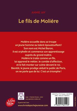 Le grand Molière accueille dans sa troupe un jeune homme de douze ans au talent époustouflant. Michel Baron est orphelin et commence son apprentissage auprès du grand maître. Molière le traite comme un fils. Il lui apprend le métier, le comble d'affection, et le fait monter sur scène devant le roi. Très vite, le jeune prodige séduit le public de Paris, on ne parle que de lui. C'est un triomphe !