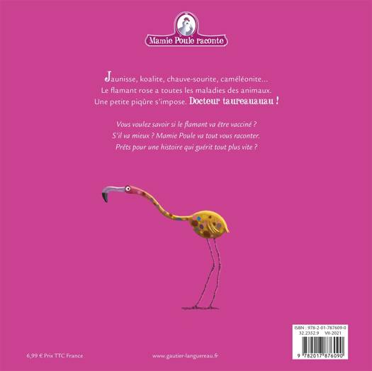 Oulala on dirait bien que le flamant rose est malade, il est tout jaune ! Vite, faites venir le docteur Taureau, l’expert des remèdes originaux. Mais quand on parle de piqûre, tous aux abris ! Une histoire hilarante pour réconcilier les enfants avec les visites chez le docteur.
