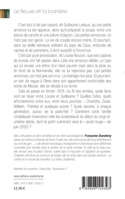 Tout commence par une petite annonce que Guillaume Ledoux découvre par hasard en épluchant des légumes dans sa demeure solitaire de la campagne normande. L'annonce a été passée par les copines de Louise Bouzon, secrétaire à Namur, qui n'a aucune envie de se marier. Nous sommes en 1978. Au fil des ans, quels liens vont se tisser entre Louise et Guillaume, entre leurs proches, Charlotte, William, Thérèse, Juliette et la jeune Zazie ? Dans ce roman à sept voix, chaque membre de cette famille compliquée raconte les évènements à sa façon : les fuites, les silences, les secrets et en toile de fond, les soubresauts du début du 21e siècle qui conduiront au « jeudi rouge » de juin 2020.