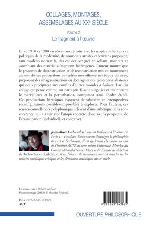 Entre 1910 et 1980, en résonnance étroite avec les utopies esthétiques et politiques de la modernité, de nombreux artistes et écrivains proposent, sans modèles normatifs, des oeuvres conçues en collant, montant et assemblant des matériaux-fragments hétérogènes. L'art du collage est pensé comme un parti pris faisant surgir ici et maintenant le merveilleux et la perturbation, contestant ainsi l'ordre établi. Ces productions hérétiques évoquent de salutaires et intempestives reconfigurations possibles-impossibles à explorer.