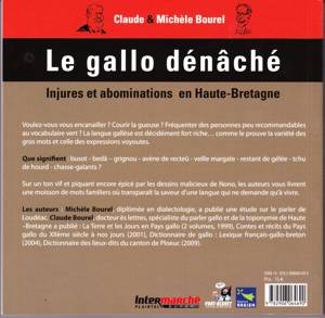 Un dictionnaire d'injures et d'expressions populaires et familières en gallo, langue de Haute-Bretagne. Les termes sont organisés par thèmes : bavardage et caquetage, brouilles et pouilles, méchants et malfaisants, les défauts liés aux physiques, ceux liés au métier et au travail, etc.