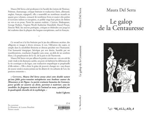 Sa poésie aborde de façon fiévreusement spiritualiste toutes sortes de sujets actuels ; elle y utilise les masques ou les prête-noms de la réalité - souvent quotidienne, familiale, conjugale, etc., mais quelquefois aussi plus générale - touchant aux problèmes de pollutions, de migrations, de guerres... - afin d’entrer en communication, voire en communion et en tous cas en réelle empathie, avec les choses, les éléments, les situations, les êtres existants ou ayant existé, que l’Histoire ramène au présent. Ou ceux qu’elle côtoie dans sa famille, tel ce merveilleux Niso, son petit-fils, ou son époux, Moreno Fabbri, serviteur inlassable des intérêts de sa compagne-poète et, comme comédien de théâtre – et parfois de cinéma – excellent diseur des textes qu’elle produit, au « galop » d’émotions tumultueuses et de pensées inspirées par des livres de sagesse traditionnelle autant que par des concepts issus de de la recherche en physique et en astronomie modernes. En cette période où le féminin se cherche, s’affiche, provoque, c’est une voix puissante de femme inscrite dans la latinité mais libre, et qui a trouvé et fait rayonner son point d’équilibre. Elle est autrice, critique et dramaturge connue et reconnue en Italie, ouvrant une voie par ce premier ouvrage en français, et bilingue. Sa traduction est assurée par un grand poète et revuiste sensible aux rythmes et à la force de l’oralité d'une poésie fluide en vers libres et d’accès facile malgré sa profondeur. Elle peut donc intéresser des comédien(ne)s et performateur(trices)s en recherche de textes pour lectures et spectacles. Maura Del Serra, née en 1948, fut professeur, très estimée à la Faculté des Lettres de Florence. Elle vit plus au nord en Toscane, dans la charmante ville de Pistoia, avec son mari comédien et manager de son oeuvre. Autrice de nombreuses pièces de théâtre et de non moins nombreux recueils de poésie, elle est également critique, essayiste, interrogeant souvent les oeuvres étrangères ou les traduisant, de l’anglais (Virginia Woolf...) ou du français (Simone Weil...)..