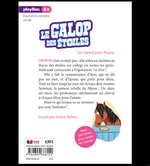 Ariana n'en revient pas : elle entre en 6e au Haras des étoiles, un collège où toutes les après-midi sont consacrées à l'équitation. Le rêve ! Elle y fait la connaissance d'Inès, qui ne dit pas un mot, et d'Epona, qui parle pour deux. Tout va bien jusqu'au jour où Ariana doit monter Summer, la jument rebelle du Haras... Or, dans 1 mois, les professeurs attribueront un cheval à chaque élève pour l'année. Pourvu qu'Ariana ne se retrouve pas avec Summer !