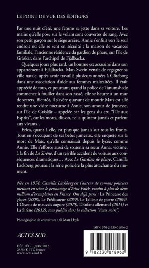 Erica, quant à elle, est plus que jamais sur tous les fronts. Tout en s'occupant de ses bébés jumeaux, elle enquête sur la mort de Mats, qu'elle connaissait depuis le lycée, comme Annie. Elle s'efforce aussi de soutenir sa soeur Anna, victime, à la fin de La Sirène, d'un terrible accident de voiture aux conséquences dramatiques... Avec «Le Gardien de phare», Camilla Läckberg poursuit la série policière la plus attachante du moment.