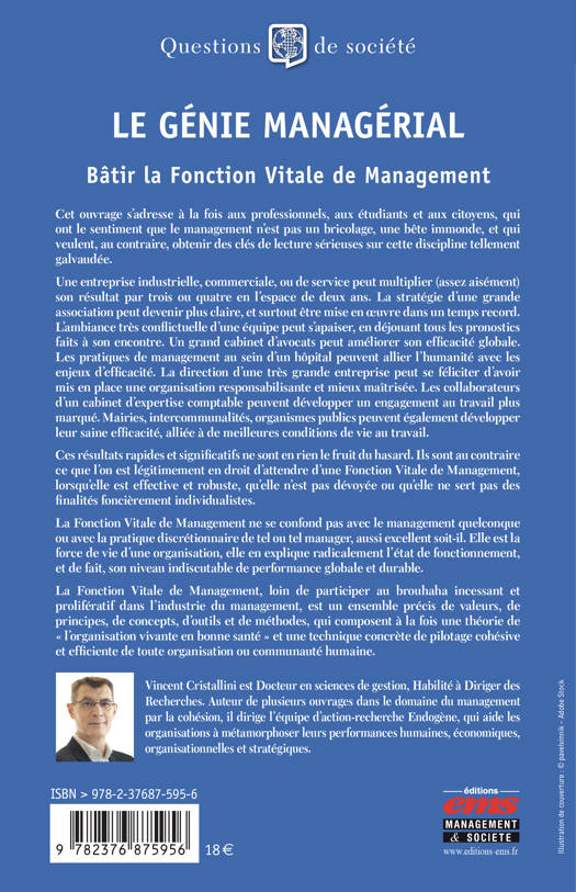 La Fonction Vitale de Management ne se confond pas avec le management quelconque ou avec la pratique discrétionnaire de tel ou tel manager, aussi excellent soit-il. Elle est la force de vie d’une organisation, elle en explique radicalement l’état de fonctionnement, et de fait, son niveau indiscutable de performance globale et durable. La Fonction Vitale de Management, loin de participer au brouhaha incessant et prolifératif dans l’industrie du management, est un ensemble précis de valeurs, de principes, de concepts, d’outils et de méthodes, qui composent à la fois une théorie de « l’organisation vivante en bonne santé » et une technique concrète de pilotage cohésive et efficiente de toute organisation ou communauté humaine.