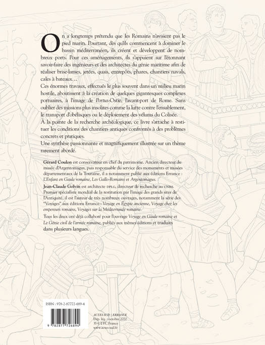 On a longtemps prétendu que les Romains n'avaient pas le pied marin ! Pourtant, dès qu'ils commencent à dominer le bassin méditerranéen, ils créent et développent de nombreux ports. Pour ces aménagements, ils s'appuient sur l'étonnant savoir-faire des ingénieurs et des architectes du génie maritime afin de réaliser brise-lames, jetées, quais, entrepôts, phares, chantiers navals, cales à bateaux... Ces énormes travaux, effectués le plus souvent dans un milieu marin hostile, aboutissent à la création de quelques gigantesques complexes portuaires à l'image de Portus-Ostie, l'avant-port de Rome. Sans oublier des missions plus insolites encore, comme la lutte contre l'ensablement, le transport d'obélisques ou le déploiement des vélums du Colisée. À la pointe de la recherche archéologique, ce livr