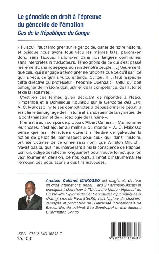 « Puisqu'il faut témoigner sur le génocide, parler de notre histoire, et puisque nous avons tous vécu les mêmes faits, parlons-en donc sans tabous. Parlons-en dans nos langues communes, sans interprètes ni traducteurs. Témoignons de ce qui s'est passé réellement dans notre pays, au sein de notre peuple. [...] Seulement, que celui qui s'engage à témoigner ne rapporte que ce qu'il sait, ce qu'il a vécu, ce qu'il a vu ou entendu. » C'est en ces termes qu'en décidant de répondre à Nsaku Kimbembe et à Dominique Kounkou sur le Génocide des Lari, A. C. Makosso invite ses compatriotes à dépassionner le débat, à enrichir le témoignage de l'histoire et à s'abstenir de la symétrie, de la contamination et de « l'idéologie de la haine ».