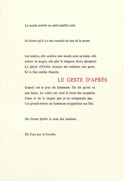 Le texte a déjà commencé. Il continue. Il regarde comment s’arrondissent les épaules au passage des portes, note attentivement le vol des oiseaux, ou la terre sous les ongles, les danses internes, le cahier de coloriage.Le silence fait partie de la partition. Interstices, intervalles, fragments. Le réel est pris littéralement, ou brutalement, à mains nues.