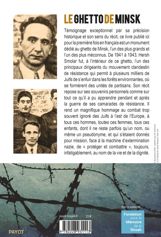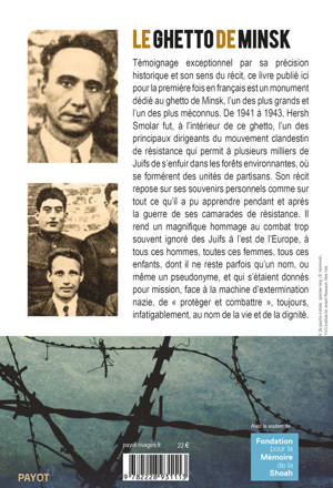Témoignage exceptionnel par sa précision historique et son sens du récit, ce livre publié ici pour la première fois en français est un monument dédié au ghetto de Minsk, l'un des plus grands et l'un des plus méconnus. De 1941 à 1943, Hersh Smolar fut, à l'intérieur de ce ghetto, l'un des principaux dirigeants du mouvement clandestin de résistance qui permit à plusieurs milliers de Juifs de s'enfuir dans les forêts environnantes, où se formèrent des unités de partisans. Son récit repose sur ses souvenirs personnels comme sur tout ce qu'il a pu apprendre pendant et après la guerre de ses camarades de résistance. Il rend un magnifique hommage au combat trop souvent ignoré des Juifs à l'Est de l'Europe, à tous ces hommes, toutes ces femmes, tous ces enfants, dont il ne reste parfois qu'un nom, ou même un pseudonyme, et qui s'étaient donnés pour mission, face à la machine d'extermination nazie, de « protéger et combattre », toujours, infatigablement, au nom de la vie et de la dignité.