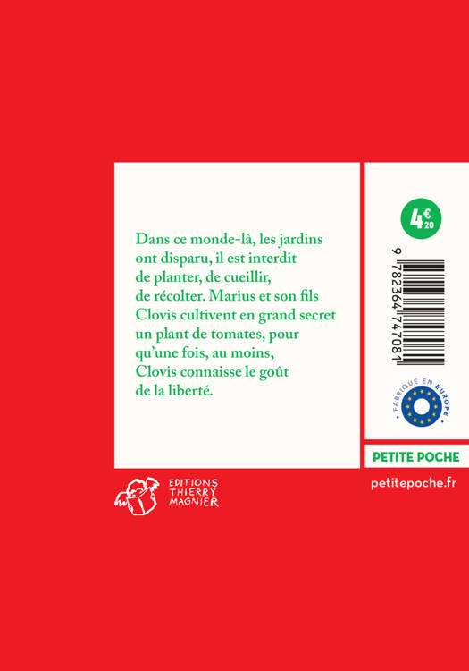 Dans ce monde, on ne mange plus que de l'artificiel, les jardins ont disparu. Clovis et son père Marius vont planter clandestinement des tomates et retrouver un goût oublié.