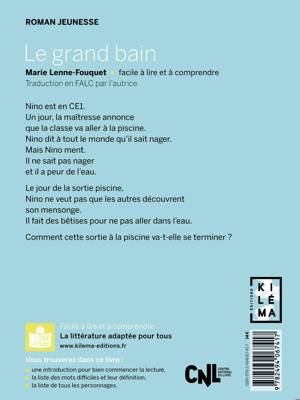 UN LIVRE FACILE À LIRE ET À COMPRENDRE. Nino est en CE1. Un jour, la maîtresse annonce que la classe va aller à la piscine. Nino dit à tout le monde qu’il sait nager. Mais Nino ment. Il ne sait pas nager et il a peur de l’eau. Le jour de la sortie piscine, Nino ne veut pas que les autres découvrent son mensonge. Il fait des bêtises pour ne pas aller dans l’eau. Comment cette sortie à la piscine va-t-elle se terminer ?