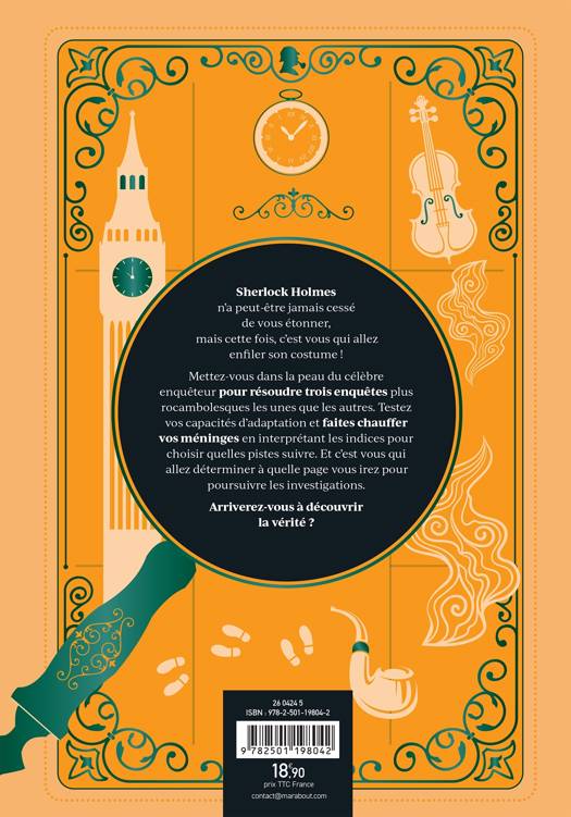 Mettez vous dans la peau du célèbre enquêteur pour résoudre trois enquêtes plus rocambolesques les unes que les autres. Testez vos capacités d'adaptation et faites chauffer vos méninges en interprétant les indices pour choisir quelles pistes suivre. Et c'est vous qui allez déterminer à quelle page vous irez pour poursuivre les investigations.