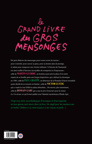 Découvrez les histoires parfois dramatiques et souvent très drôles des plus célèbres mensonges et impostures de l'Histoire. De la malédiction de Toutankhamon à la construction d'un faux Paris pendant la Première Guerre mondiale, en passant par une attaque de Martiens. Dans ce documentaire, le lecteur découvre des faits divers ou historiques étonnants, méconnus et captivants. L'imagination des uns et la crédulité des autres sont parfois sans limites !