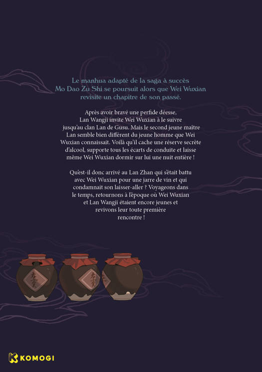 Le manhua adapté de la saga à succès Mo Dao Zu Shi se poursuit alors que Wei Wuxian revisite un chapitre de son passé. Après avoir bravé une perfide déesse, Lan Wangji invite Wei Wuxian à le suivre jusqu'au clan Lan de Gusu. Mais le second jeune maître Lan semble bien différent du jeune homme que Wei Wuxian connaissait. Voilà qu'il cache une réserve secrète d'alcool, supporte tous les écarts de conduite et laisse même Wei Wuxian dormir sur lui une nuit entière ! Qu'est-il donc arrivé au Lan Zhan qui s'était battu avec Wei Wuxian pour une jarre de vin et qui condamnait son laisser-aller ? Voyageons dans le temps, retournons à l'époque où Wei Wuxian et Lan Wangji étaient encore jeunes et revivons leur toute première rencontre !