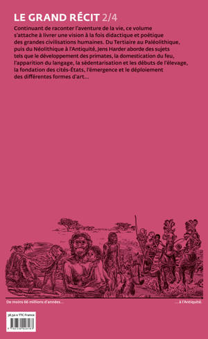 Continuant de raconter l'aventure de la vie, ce volume s'attache à livrer une vision à la fois didactique et poétique des grandes civilisations humaines. Du Tertiaire au Paléolithique, puis du Néolithique à l'Antiquité, Jens Harder aborde des sujets tels que le développement des primates, la domestication du feu, l'apparition du langage, la sédentarisation et les débuts de l'élevage, la fondation des cités-États, l'émergence et le déploiement des différentes formes d'art...