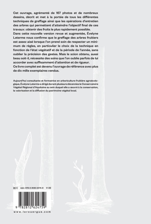 Dans cette nouvelle version revue et augmentée, Évelyne?Leterme nous confirme que le greffage des arbres fruitiers est assez aisé lorsque l'on prend soin de respecter un minimum de règles, en particulier le choix de la technique en fonction de l'état végétatif et de la période de l'année, sans oublier la précision des gestes. Mais le scion obtenu, aussi beau soit-il, nécessite des soins que l'on oublie parfois de lui accorder avec suffisamment d'attention et de rigueur. Cet ouvrage, agrémenté de 167 photos couleur et de nombreux dessins, décrit et met à la portée de tous les différentes techniques de greffage ainsi que les opérations d'entretien des arbres qui permettent d'atteindre l'objectif final de ces travaux?: obtenir le plus rapidement possible de jolis fruits dans son verger.