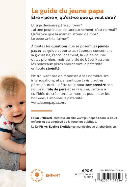 Et si je devenais père au foyer ? J’ai une peur bleue de l’accouchement : c’est normal ? Qu’est-ce que la maman attend de moi ? Le bébé va-t-il m’aimer ? À toutes les questions que se posent les jeunes papas, ce guide apporte les réponses concernant la grossesse, l’accouchement, la vie de couple et les premiers mois de la vie de bébé. Rassurés, les nouveaux pères aborderont la paternité en toute sérénité. Ne trouvant pas de réponses à ses nombreuses interrogations, et pensant que l’avis d’autres pères pourrait lui être utile pour comprendre son nouveau rôle de père et se rassurer, l’auteur a eu l’idée de créer un site internet pour aider les hommes à aborder la paternité : www.jeunepapa.com.