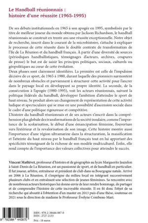 De ses débuts institutionnels en 1965 à son apogée en 1995, symbolisée par le titre de meilleur joueur du monde obtenu par Jackson Richardson, le handball réunionnais se construit en trente ans une réussite exceptionnelle. Notre objet de recherche, inscrit dans le courant de la microhistoire, s’attache à expliquer le processus de cette réussite dans le double contexte de transformation de l’île de La Réunion et du handball français. À partir d’une diversité de sources (périodiques handballistiques, témoignages d’acteurs, archives, coupures de presse) le but est de saisir les principes politiques, sociaux, culturels ou géopolitiques au cœur de cette évolution. Deux phases sont clairement identifiées. La première est celle de l’impulsion décisive de ce sport, de 1965 à 1980, durant laquelle des pionniers surmontent de nombreux obstacles et parviennent à structurer cette activité pour l’ancrer dans le paysage local en développant sa propre identité. La seconde, de la consécration à l’apogée (1980-1995), voit les acteurs réunionnais, suivant la politique fédérale du handball, développer l’ambition d’atteindre le sport de haut niveau. Se produit alors un changement de représentation de cette activité ludique et spectaculaire qui se mue en une possibilité d’ascension sociale dans le cadre d’une politique rigoureuse et compétitive. L’histoire du handball réunionnais et de ses acteurs s’inscrit dans la compréhension plus globale des transformations de la société insulaire, comme l’importance de la scolarisation, le début d’une émancipation féminine, l’ouverture vers l’extérieur et la revalorisation de son image. Cette histoire montre aussi l’importance d’une région ultramarine dans la structuration, la massification et l’atteinte du haut niveau par le handball français tout en lui apportant des spécificités témoignant de la richesse de son modèle multiculturel. Enfin, elle rend compte de l’importance des valeurs collectives pour atteindre le succès.