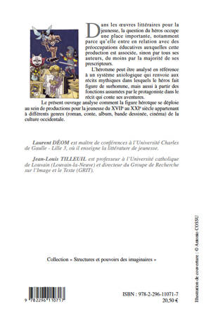 Dans les oeuvres littéraires pour la jeunesse, la question du héros occupe une place importante, notamment parce qu'elle entre en relation avec des préoccupations éducatives. L'héroïsme renvoie aux récits mythiques dans lesquels le héros fait figure de surhomme, mais aussi aux fonctions qu'assume le protagoniste dans le récit qui conte ses aventures. Le présent ouvrage s'intéresse aux productions pour la jeunesse de la culture occidentale, du XVII° au XXI° siècle (roman, conte, album, bande dessinée, cinéma).