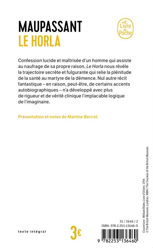 Le Horla nous révèle la trajectoire secrète et fulgurante qui relie la plénitude de la santé au martyre de la démence. Nul autre récit fantastique - en raison, peut-ètre, de certains accents autobiographiques - n'a développé avec plus de rigueur et de vérité clinique l'implacable logique de l'imaginaire.