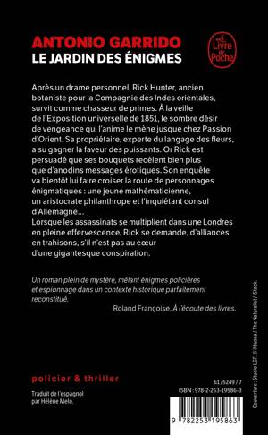 Après un drame personnel, Rick Hunter, ancien botaniste pour la Compagnie des Indes orientales, survit comme chasseur de primes. À la veille de l’Exposition universelle de 1851, le sombre désir de vengeance qui l’anime le mène jusque chez Passion d’Orient. Sa propriétaire, experte du langage des fleurs, a su gagner la faveur des puissants. Or Rick est persuadé que ses bouquets recèlent bien plus que d’anodins messages érotiques. Son enquête va bientôt lui faire croiser la route de personnages énigmatiques : une jeune mathématicienne, un aristocrate philanthrope et l’inquiétant consul d’Allemagne… Lorsque les assassinats se multiplient dans un Londres en pleine effervescence, Rick se demande, d’alliances en trahisons, s’il n’est pas au cœur d’une gigantesque conspiration…