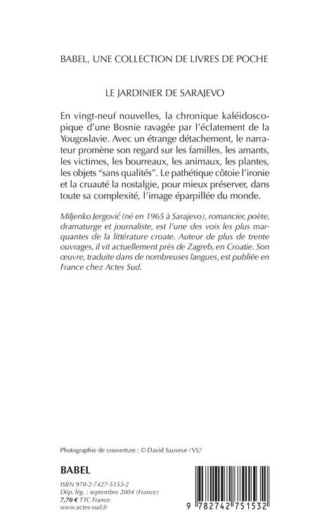 En vingt-neuf nouvelles, la chronique kaléidoscopique d'une Bosnie ravagée par l'éclatement de la Yougoslavie. Avec un étrange détachement, le narrateur promène son regard sur les familles, les amants, les victimes, les bourreaux, les animaux, les plantes, les objets "sans qualités". Le pathétique côtoie l'ironie et la cruauté la nostalgie, pour mieux préserver, dans toute sa complexité, l'image éparpillée du monde.