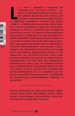 La déconstruction politique, la dislocation économique et la dévaluation symbolique de « la classe ouvrière », les nouvelles stratégies managériales mettant en place une gestion individualisée du monde du travail, le développement du secteur des services, la féminisation des emplois subalternes, l’alignement de la condition des employé(e)s sur celle des ouvriers, la précarisation de la strate inférieure du salariat d’exécution, la croissance des taux de scolarisation ont modifié les contours du « nous » populaire. On s’interroge ici sur les conséquences de ce délitement protéiforme du collectif ouvrier, sur les formes d’individualisation, sur le repli dans l’entre-soi et sur les formes d’une possible recomposition d’un « nous » au sein des classes populaires que suggère le récent mouvement des « Gilets jaunes ».<br /><br /><br /><br />