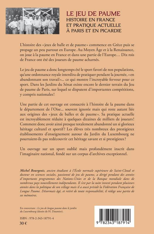 L'histoire des "jeux de balle et de paume" commence en Grèce puis se propoage un peu partout en Europe. Au Moyen Âge et à la Renaissance, on joue à la paume en France et dans une partie de l'Europe. Le jeu de paume a donc longtemps été le sport favori de nos populations, qu'une ordonnance royale interdira de pratiquer pendant la journée, "en abandonnant son travail"... ce qui montre l'incroyable ferveur pour ce sport. Un ouvrage sur un sport oublié mais profondément inscrit dans l'imaginaire national, fondé sur un corpus d'archives exceptionnel.