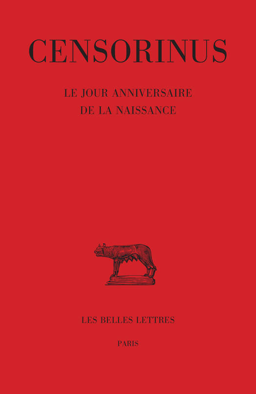 Censorinus est un savant grammairien romain du IIIe siecle ap. J.-C. Son Sur le jour anniversaire de la naissance a ete compose exactement en 238 ap. J.-C. et est la seule de ses uvres qui nous soit parvenue. Il constitue un cadeau d'anniversaire offert pour ses 49 ans a Quintus Caerellius, important chevalier romain qui protegeait l'auteur. C'est une petite somme de connaissances qui, dans une premiere partie, releve ce que disait la science antique sur les phenomenes menant a la naissance (determination du sexe de l'enfant, duree de la gestation, influence des astres etc.) et, dans une deuxieme partie, situant la naissance de Caerellius dans le temps, indique ce que l'on savait a l'epoque sur la mesure du temps (grandes annees, annees, mois, jours) et nous fournit ainsi de precieuses informations, notamment sur les calendriers antiques.