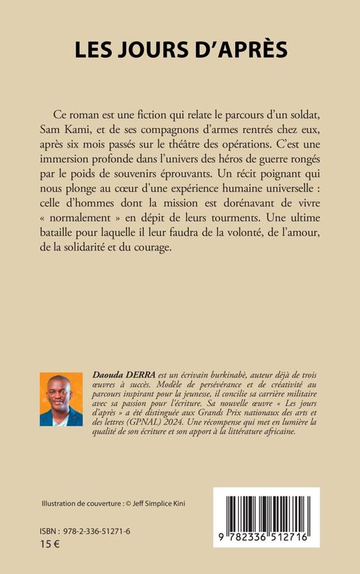 Ce roman est une fiction qui relate le parcours d'un soldat, Sam Kami, et de ses compagnons d'armes rentrés chez eux, après six mois passés sur le théâtre des opérations. C'est une immersion profonde dans l'univers des héros de guerre rongés par le poids de souvenirs éprouvants. Un récit poignant qui nous plonge au coeur d'une expérience humaine universelle: celle d'hommes dont la mission est dorénavant de vivre normalement en dépit de leurs tourments. Une ultime bataille pour laquelle il leur faudra de la volonté, de l'amour, de la solidarité et du courage.