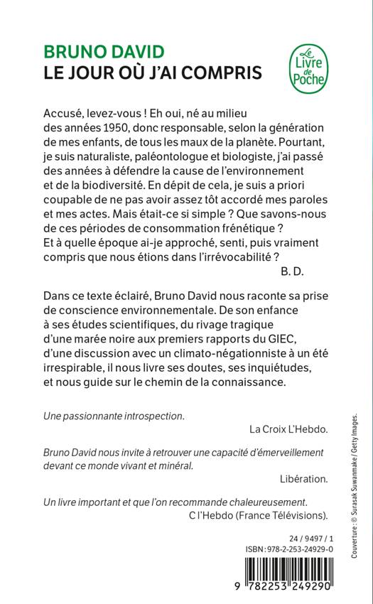 Dans ce texte éclairé, Bruno David nous raconte sa prise de conscience environnementale. De son enfance à ses études scientifiques, du rivage tragique d’une marée noire au rapport du GIEC, d’une discussion avec un climato-négationniste à un été irrespirable, il nous livre ses doutes, ses inquiétudes, et nous guide sur le chemin de la connaissance.