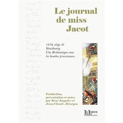 Une Britannique sous les bombes prussiennes En 1870, Miss Jacot (anglaise ou irlandaise?) est préceptrice des enfants de la famille H. Lors du siège et du bombardement de Strasbourg, elle tient un journal, relatant les angoisses et les multiples soucis quotidiens des Strasbourgeois. Découvert dans un grenier de Manchester 120 ans après, son journal, a été traduit et présenté par Jean-Claude Ménégoz et René Kappler en 1996, précédé d'un avant-propos historique. Introuvable depuis, il reparaît à l'occasion des 150 ans du siège de Strasbourg.