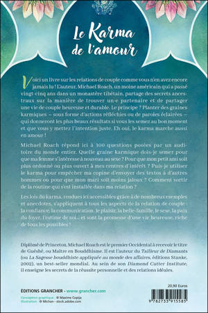 Voici un livre sur les relations de couple comme vous n'en avez encore jamais lu ! L’auteur, Michael Roach, un moine américain qui a passé vingt-cinq ans dans un monastère tibétain, partage des secrets ancestraux sur la manière de trouver un·e partenaire et de partager une vie de couple heureuse et durable. Le principe ? Planter des graines karmiques – sous forme d’actions réfléchies ou de paroles éclairées – qui donneront les plus beaux résultats si vous les semez au bon moment et que vous y mettez l’intention juste. Eh oui, le karma marche aussi en amour ! Michael Roach répond ici à 100 questions posées par un auditoire du monde entier. Quelle graine karmique dois-je semer pour que ma femme s'intéresse à nouveau au sexe ? Pour que mon petit ami soit plus ordonné ou plus ouvert à mes centres d’intérêt ? Puis-je utiliser le karma pour empêcher ma copine d'envoyer des textos à d’autres hommes ou pour que mon mari soit moins jaloux ? Les lois du karma, rendues ici accessibles grâce à de nombreux exemples et anecdotes, s’appliquent à tous les aspects de la relation de couple : confiance, communication, plaisir, belle-famille, paix du foyer...
