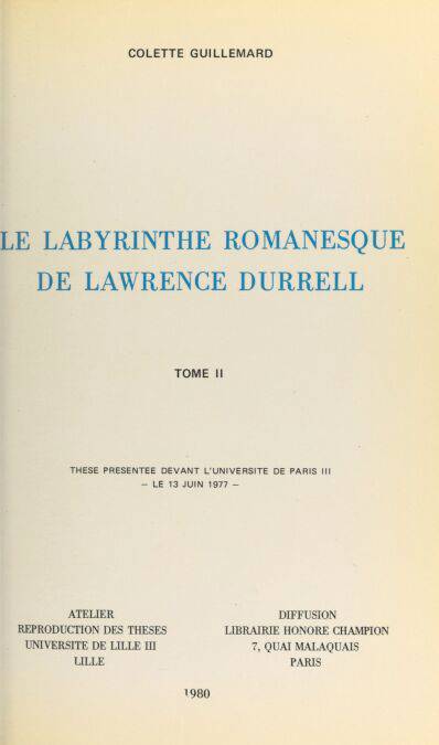 Le labyrinthe romanesque de Lawrence Durrell (2) EBOOK