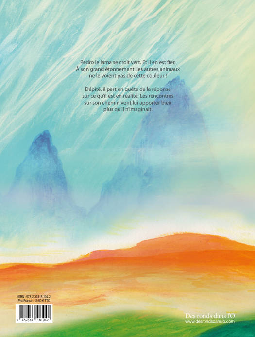 Pedro, le Lama caca d’oie, se voit d’une autre couleur... Il se croit totalement intégré aux autres, pourtant tous lui disent sa couleur de lainage... Il est assez atterré et dépité, jusqu’à ce qu’une magnifique lama femelle lui dise qu’elle trouve sa couleur très belle !...