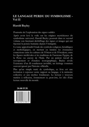 Poursuite de l'exploration des signes oubliés. Après avoir levé le voile sur les origines mystérieuses du symbolisme universel, Harold Bayley poursuit, dans ce second volume, son fascinant déchiffrage des signes et images qui ont façonné la pensée humaine depuis l'Antiquité. Ce volume approfondit 'étude des symboles religieux, héraldiques et mythologiques, en mettant en lumière les étonnantes connexions entre les cultures de l'Orient et de l'Occident, entre les figures médiévales et les traditions de l'ancienne Egypte, de la Perse ou encore de l'Inde. Par un patient travail de recoupement et d'analyse iconographique, Bayley révèle l'existence d'un fil conducteur invisible, un héritage commun souvent ignoré par l'histoire officielle. Plus qu'un simple traité de symbolique, ce livre est une invitation à repenser notre rapport au langage, à la mémoire collective et aux mythes fondateurs. Le lecteur y trouvera matière à réflexion, étonnement et, peut être les clés d'une lecture nouvelle du monde.