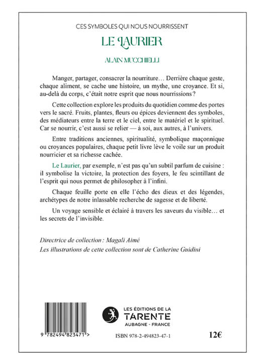 Manger, partager, consacrer la nourriture… Derrière chaque geste, chaque aliment, se cache une histoire, un mythe, une croyance. Et si, au-delà du corps, c’était notre esprit que nous nourrissions ? Cette collection explore les produits du quotidien comme des portes vers le sacré. Fruits, plantes, fleurs ou épices deviennent des symboles, des médiateurs entre la terre et le ciel, entre le matériel et le spirituel. Car se nourrir, c’est aussi se relier — à soi, aux autres, à l’univers. Entre traditions anciennes, spiritualité, symbolique maçonnique ou croyances populaires, chaque petit livre lève le voile sur un produit nourricier et sa richesse cachée. Le Laurier, par exemple, n’est pas qu’un subtil parfum de cuisine : il symbolise la victoire, la protection des foyers, le feu scintillant de l’esprit qui nous permet de philosopher à l’infini. Chaque feuille porte en elle l’écho des dieux et des légendes, archétypes de notre inlassable recherche de sagesse et de liberté. Un voyage sensible et éclairé à travers les saveurs du visible… et les secrets de l’invisible.