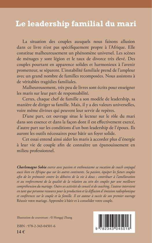 Charlemagne Sobia exerce avec passion et enthousiasme sa vocation de coach conjugal, aussi bien en Afrique que sur les autres continents. Sa passion : équiper les futurs couples, afin de les prémunir contre les déboires de la vie à deux, contribuer à l'amélioration et au renforcement de la qualité de la relation au sein des couples. Même si chaque chef de famille a son modèle de leadership, cet ouvrage concerne le rôle du mari et les conditions d'un bon leadership d'époux.