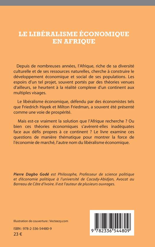 Depuis de nombreuses années, l'Afrique, riche de sa diversité culturelle et de ses ressources naturelles, cherche à construire le développement économique et social de ses populations. Les espoirs d'un tel projet, souvent portés par des théories venues d'ailleurs, se heurtent à la réalité complexe d'un continent aux multiples visages. Le libéralisme économique, défendu par des économistes tels que Friedrich Hayek et Milton Friedman, a souvent été présenté comme une voie de prospérité. Mais est-ce vraiment la solution que l'Afrique recherche ? Ou bien ces théories économiques s'avèrent-elles inadéquates face aux défis propres à ce continent ? Le livre examine ces questions de manière thématique pour montrer la force de l'économie de marché, l'autre nom du libéralisme économique.
