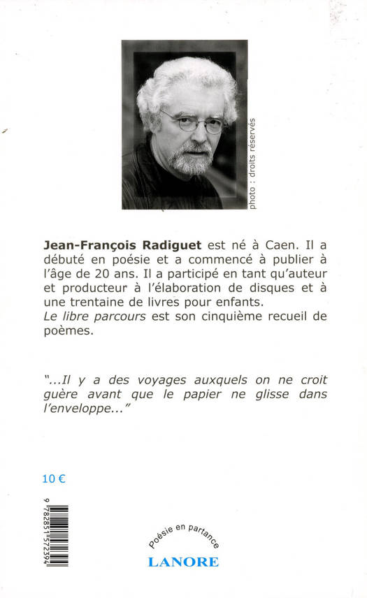Le libre parcours est le cinquième recueil de poèmes de l'auteur. "...Il y a des voyages auxquels on ne croit guère avant que le papier ne glisse dans l'enveloppe.