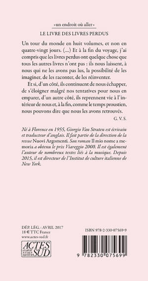 Huit histoires vraies de "livres perdus" - égarés dans des circonstances parfois dramatiques, ou détruits pour des raisons qui vont de la censure à l'insatisfaction maniaque de leur auteur - que Giorgio Van Straten, tel un détective amoureux, tente de ressusciter à partir des traces qu'ils ont laissées.