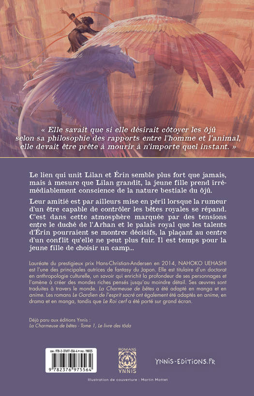 Le lien qui unit Lilan et Érin semble plus fort que jamais, mais à mesure que Lilan grandit, la jeune fille prend irrémédiablement conscience de la nature bestiale du ôjû. Leur amitié est par ailleurs mise en péril lorsque la rumeur d’un être capable de contrôler les bêtes royales se répand. C’est dans cette atmosphère marquée par des tensions entre le duché de l’Arhan et le palais royal que les talents d’Érin pourraient se montrer décisifs, la plaçant au centre d’un conflit qu’elle ne peut plus fuir. Il est temps pour la jeune fille de choisir un camp...