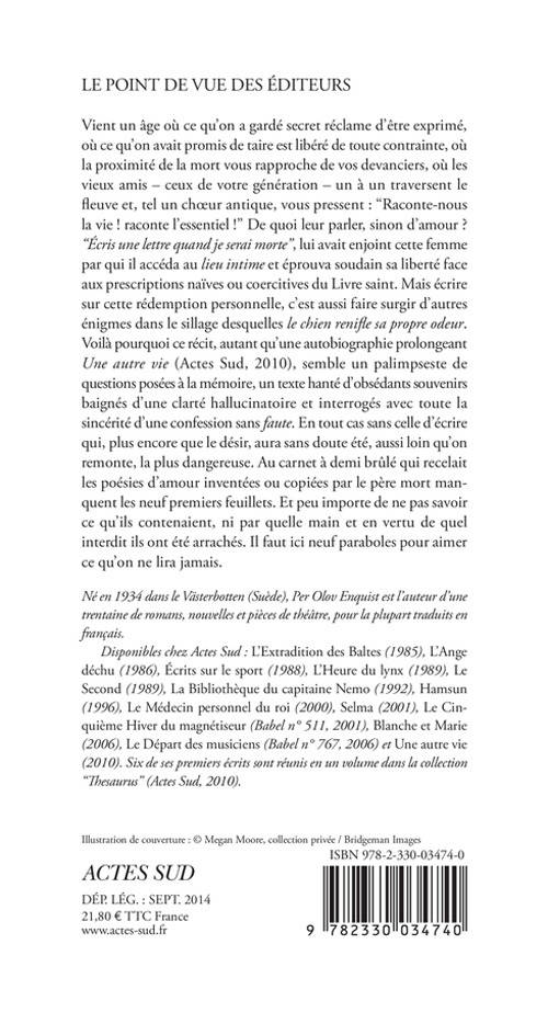 Vient un âge où ce qu'on a gardé secret réclame d'être exprimé, où ce qu'on avait promis de taire est libéré de toute contrainte, où la proximité de la mort vous rapproche de vos devanciers, où les vieux amis - ceux de votre génération - un à un traversent le fleuve et, tel un choeur antique, vous pressent : "Raconte-nous la vie ! raconte l'essentiel !" De quoi leur parler, sinon d'amour ? "«Écris une lettre quand je serai morte»", lui avait enjoint cette femme par qui il accéda au lieu intime et éprouva soudain sa liberté face aux prescriptions naïves ou coercitives du Livre saint. Mais écrire sur cette rédemption personnelle, c'est aussi faire surgir d'autres énigmes dans le sillage desquelles «le chien renifle sa propre odeur». Voilà pourquoi ce récit, autant qu'une autobiographie prolongeant «Une autre vie» (Actes Sud, 2010), semble un palimpseste de questions posées à la mémoire, un texte hanté d'obsédants souvenirs baignés d'une clarté hallucinatoire et interrogés avec toute la sincérité d'une confession sans «faute». En tout cas sans celle d'écrire qui, plus encore que le désir, aura sans doute été, aussi loin qu'on remonte, la plus dangereuse. Au carnet à demi brûlé qui recelait les poésies d'amour inventées ou copiées par le père mort manquent les neuf premiers feuillets. Et peu importe de ne pas savoir ce qu'ils contenaient, ni par quelle main et en vertu de quel interdit ils ont été arrachés. Il faut ici neuf paraboles pour aimer ce qu'on ne lira jamais.