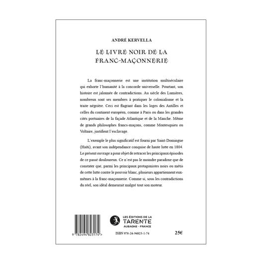 L’exemple le plus significatif est fourni par Saint-Domingue (Haïti), avant son indépendance conquise de haute lutte en 1804. Le présent ouvrage a pour objet de retracer les principaux épisodes de ce passé douloureux. Ce n’est pas le moindre paradoxe que de constater que, parmi les principaux protagonistes noirs ou métis de cette lutte contre le pouvoir blanc, plusieurs appartiennent eux-mêmes à la franc-maçonnerie. Comme si, sous les contradictions du réel, son idéal demeurait malgré tout son moteur.