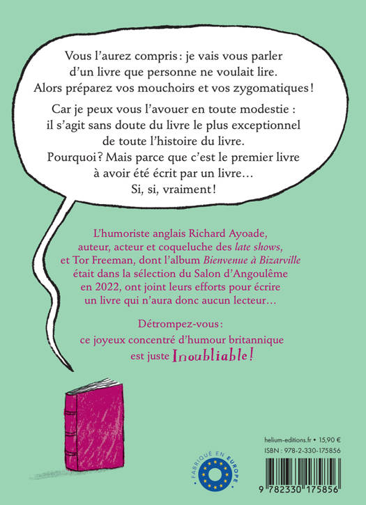 « Vous l'aurez compris : je vais vous parler d'un Livre que personne ne voulait lire. Alors préparez vos mouchoirs et vos zygomatiques ! Car je peux vous l'avouer en toute modestie : il s'agit sans doute du livre le plus exceptionnel de toute l'histoire du livre. Pourquoi ? Mais parce que c'est le tout premier livre à avoir été écrit par un livre ! Oui oui, vous tenez entre vos mains une lecture délicieusement inédite... »