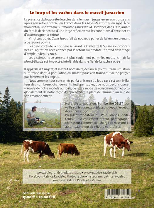 La présence du loup a été détectée dans le massif jurassien en 2003, onze ans après son retour officiel en France dans les Alpes-Maritimes en 1992. A ce moment-là, une attaque sur moutons aux Plans d’Hotonnes, dans l’Ain, aurait dû être le déclencheur d’une large réflexion sur les conditions d’anticiper et d’accompagner ce retour. Vingt ans après, Canis lupus fait de nouveau parler de lui en s’en prenant à de jeunes bovins. Les deux côtés de la frontière séparant la France de la Suisse sont concernés et l’agitation occasionnée par le retour du prédateur prend davantage d’ampleur depuis 2022. Les victimes ne se comptent plus seulement parmi les moutons mais la Montbéliarde est impactée. Intolérable dans le fief de la vache sacrée ! Il apparaissait urgent, et surtout nécessaire, de faire le point sur une situation sulfureuse dont la population du massif jurassien franco-suisse ne perçoit pas forcément les enjeux. Nous sommes tous concernés par la présence du loup car c’est un révélateur des nombreux changements, indispensables, que nous devons opérer vis-à-vis de notre modèle agricole, de notre mode de consommation et plus globalement de notre façon d’appréhender la place de l’humain au sein de son environnement.