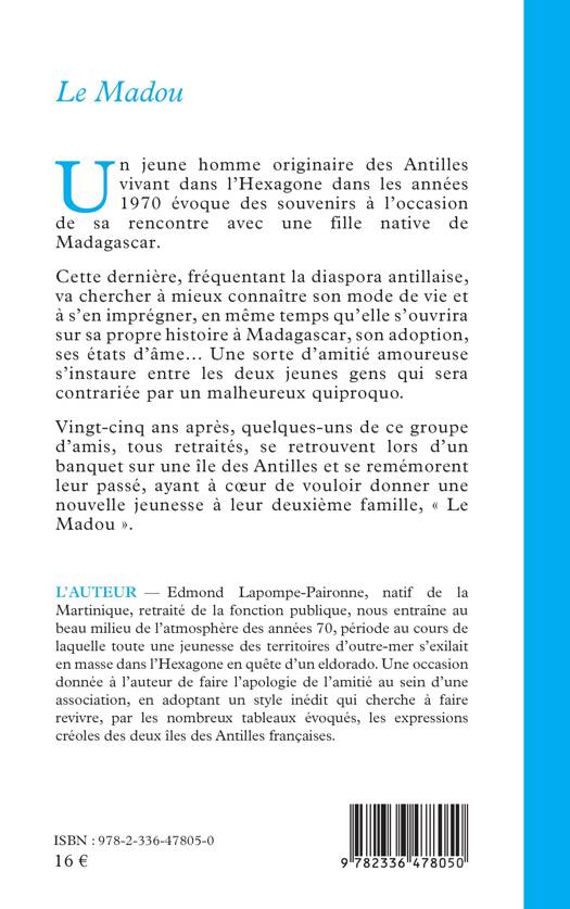 Un jeune homme originaire des Antilles vivant dans l’Hexagone dans les années 1970 évoque des souvenirs à l’occasion de sa rencontre avec une fille native de Madagascar. Cette dernière, fréquentant la diaspora antillaise, va chercher à mieux connaître son mode de vie et à s’en imprégner, en même temps qu’elle s’ouvrira sur sa propre histoire à Madagascar, son adoption, ses états d’âme… Une sorte d’amitié amoureuse s’instaure entre les deux jeunes gens qui sera contrariée par un malheureux quiproquo. Vingt-cinq ans après, quelques-uns de ce groupe d’amis, tous retraités, se retrouvent lors d’un banquet sur une île des Antilles et se remémorent leur passé, ayant à cœur de vouloir donner une nouvelle jeunesse à leur deuxième famille, « Le Madou ».