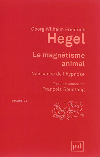 Dans son Encyclopédie des sciences philosophiques, Hegel parle du magnétisme animal au début de la troisième partie intitulée « Philosophie de l’esprit ». Ces pages, traduites et commentées par François Roustang, pourraient peut-être éclairer la pratique de l’hypnose. La question est de savoir si l’on peut bénéficier des réflexions de Hegel sans pour autant se laisser enfermer par le système de pensée au sein desquelles elles ont été formulées. L’exercice est peut-être périlleux, mais pourquoi ne pas s’y prêter ?